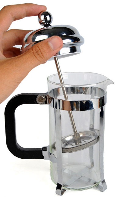 Bước 5: Nén bã cà phê Sau khi cà phê đã ngấm, từ từ ấn phin nén xuống để tách phần bã cà phê ra khỏi nước. Lưu ý chỉ nên nén cà phê chậm để tránh bã cà phê lọt qua phin nén hoặc làm bắn nước nóng ra ngoài qua miệng bình. Kết thúc quá trình này, cà phê đã sẵn sàng để thưởng thức. |