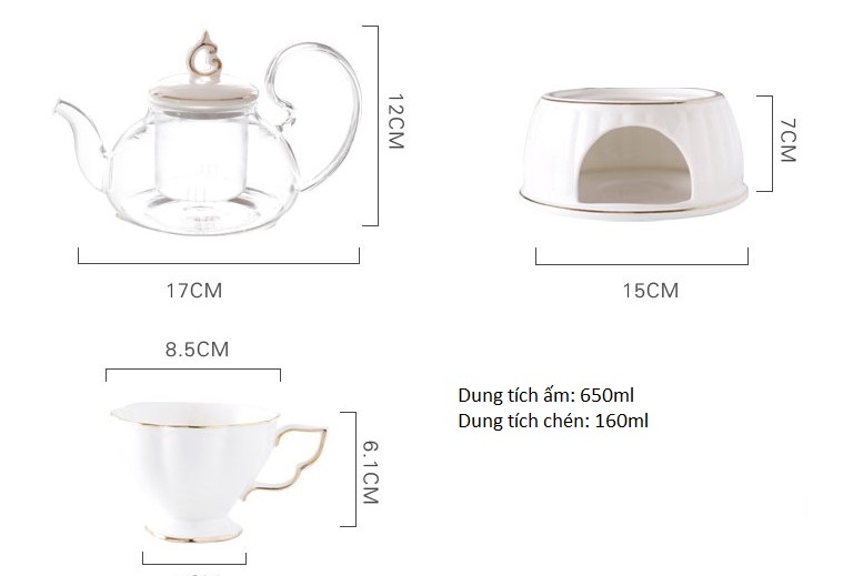 - 01 đế nến giữ nhiệt bằng sứ, giúp giữ ấm trà trong khi thưởng thức