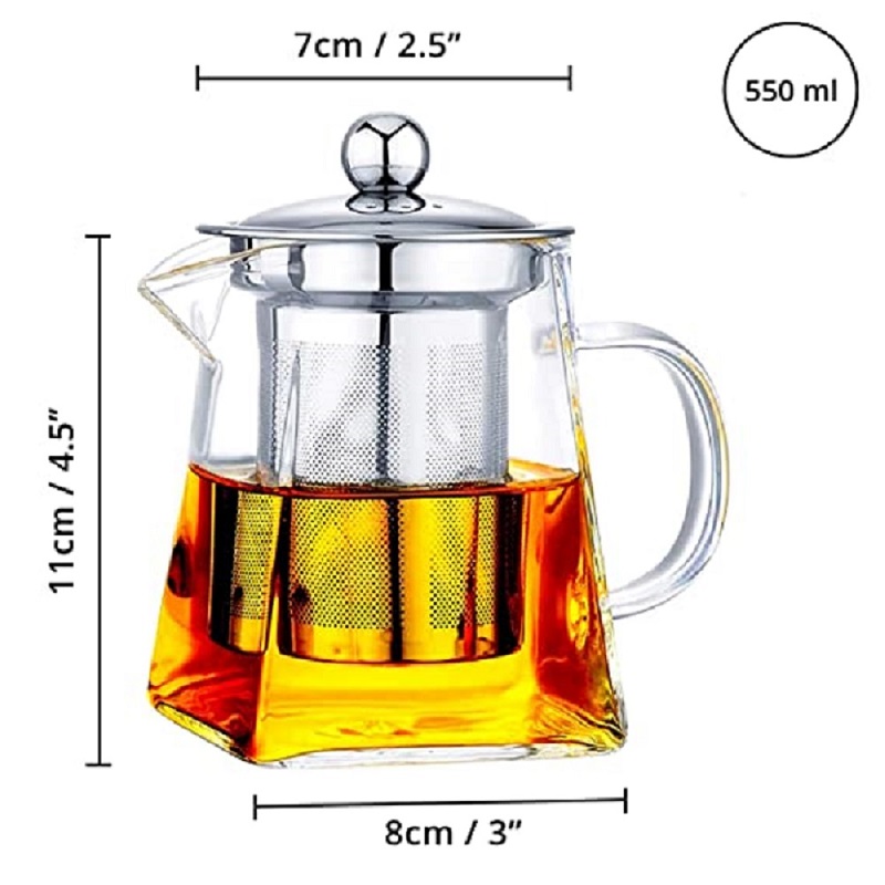 + 01 ấm trà thủy tinh có lõi lọc inox dung tích 550ML
