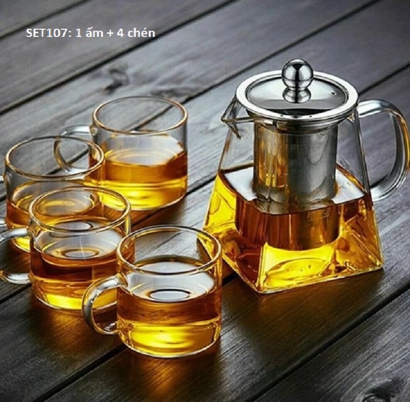 Bộ ấm chén pha trà thủy tinh bao gồm: