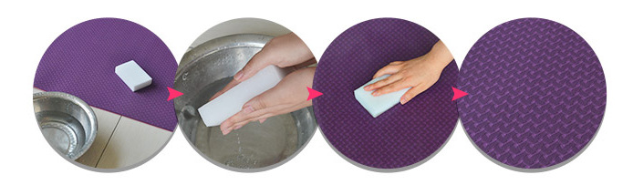 - Nếu trong trường hợp thảm của bạn chỉ bị bẩn nhẹ thì bạn chỉ cần xịt nhẹ một chút nước bằng chai xịt hay miêng vải ướt để lau rồi phơi khô. Do được cấu tạo bằng chất cao su thiên nhiên nên chỉ cần một quá trình sử dụng sản phẩm có độ sáng lên rõ rệt và không còn mùi khó chịu.