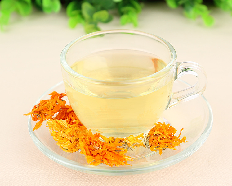Trà cúc kim tiền hay cúc vạn thọ được làm ra bằng cách sơ chế những bông hoa vạn thọ, sạch, sấy khô, đảm bảo an toàn vệ sinh thực phẩm nhằm bảo vệ sức khỏe và phòng chống bệnh tật. Đây là loại trà có vị thơm thoang thoảng, tính mát, có kháng khuẩn, chống viêm, tiêu đờm và giảm đau